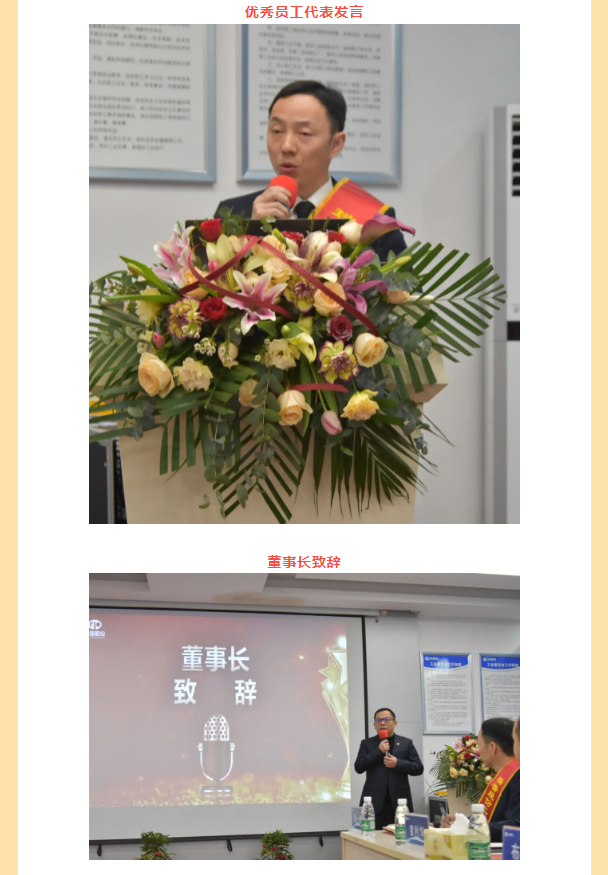 年會開始,董事長上臺致辭,共同回顧過去一年的辛勤與收獲,展望未來的機遇與挑戰(zhàn)。過去一年,全體員工團結協(xié)作,攻堅克難,取得了令人矚目的成績。董事長代表公司管理層,向每一位辛勤付出的員工表示衷心的感謝和崇高的敬意。希望未來,繼續(xù)發(fā)揚拼搏精神,共創(chuàng)更加輝煌的明天。最后,對全體員工表達了真摯的新年祝福。