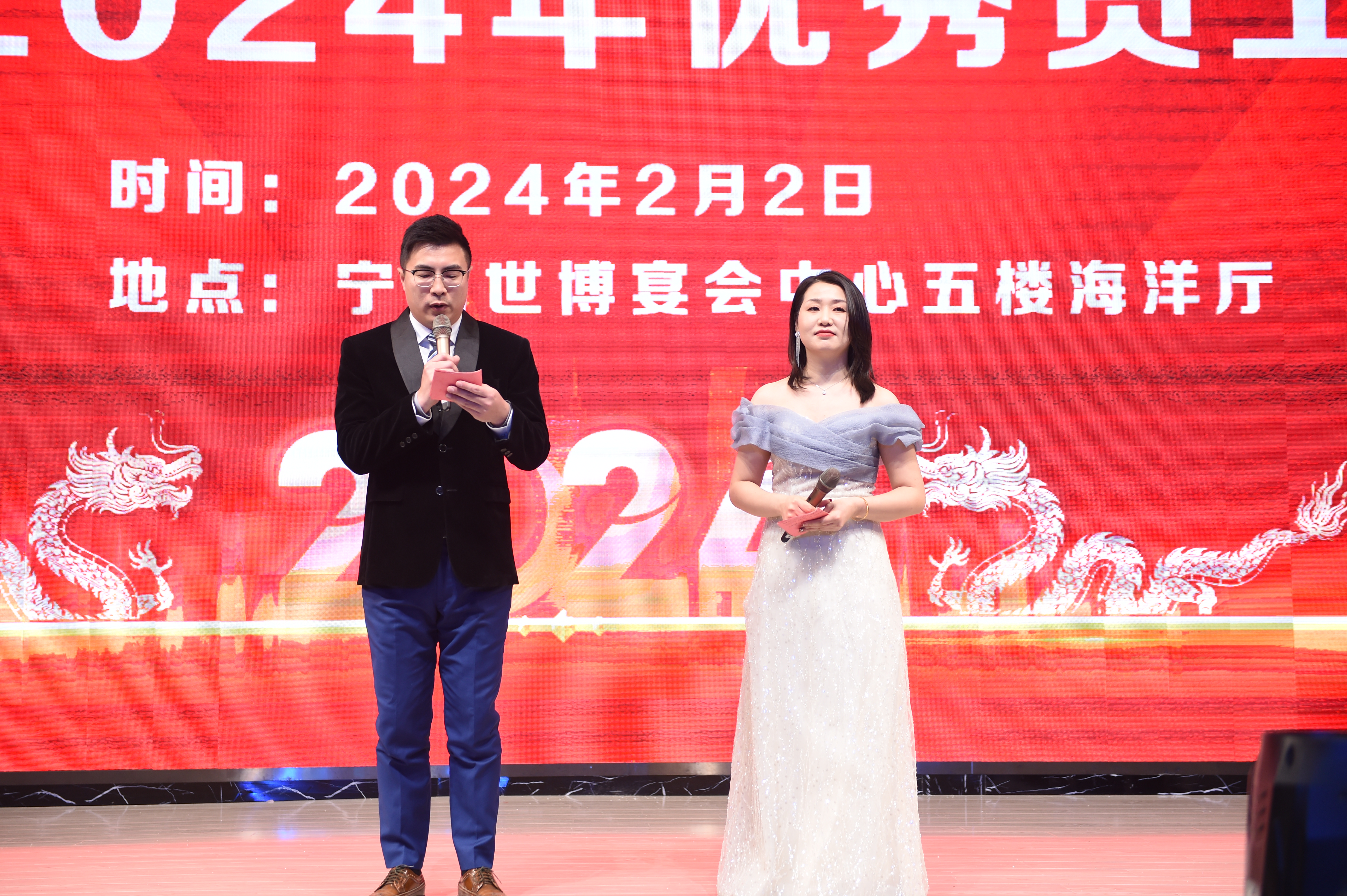 龍騰虎躍慶盛事,馬到功成事業(yè)興,安徽瑞普橡塑有限公司年會由國際貿易部經理和人力資源部經理擔任主持人,瑞普2024年會在倆位主持人簡單而又大氣的開場白下正式拉開序幕。