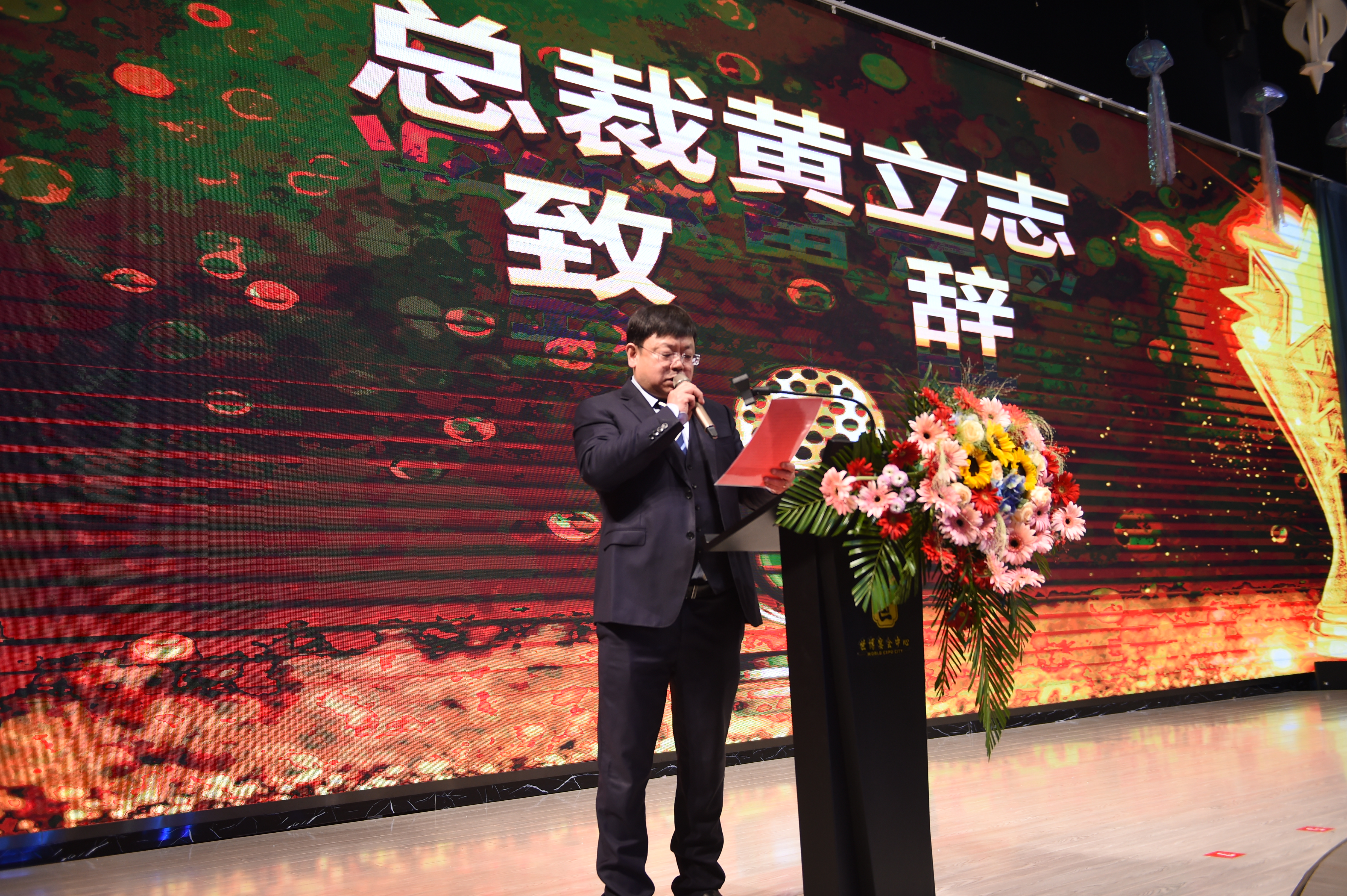 頒獎典禮結束后,由公司總裁黃立志先生致辭,黃總對全體員工表達了由衷感謝,感謝各位員工在過去一年的辛勤付出,并對優(yōu)秀員工進行了表揚,希望全體員工向優(yōu)秀員工學習,最后,黃總向大家致以最誠摯的祝福,宣布晚宴正式開始!