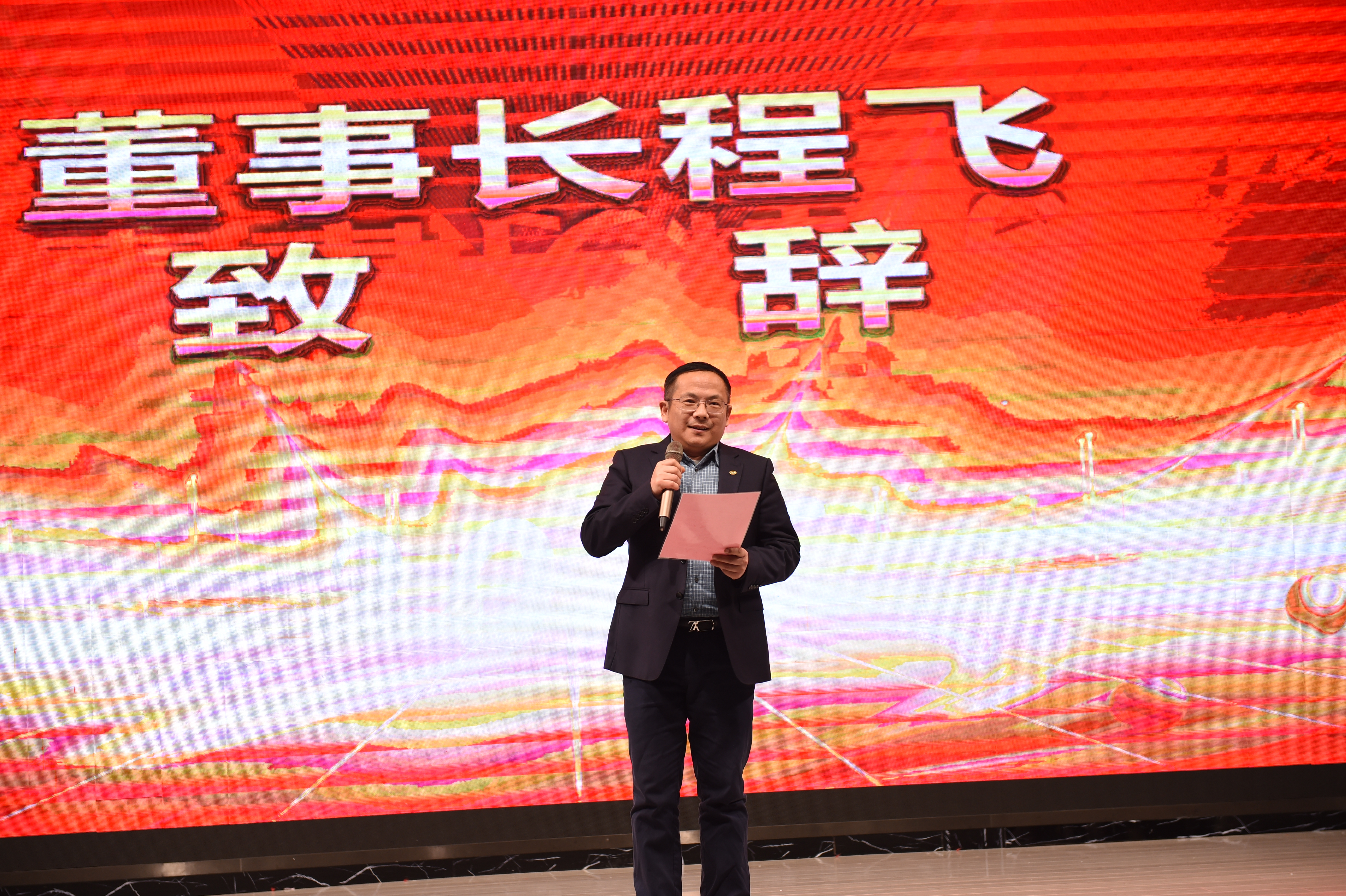 年會及頒獎典禮開始前,由公司董事長程飛先生進行了慷慨激昂的發(fā)言,董事長首先對公司全體員工致以最誠摯的祝福和熱烈的問候,其次對新的一年向大家提出了建設性意見,希望公司在全體員工的共同努力下,能以精益至臻、與時俱進的面貌迎接新的挑戰(zhàn)。最后,董事長宣布此次年會及頒獎典禮正式開始!