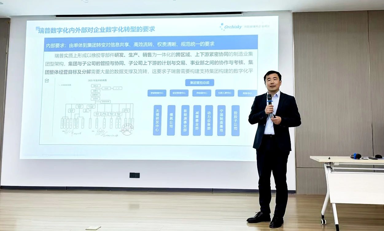 大會上,蘭之天軟件銷售總監(jiān)李成豹詳細介紹了瑞普橡塑數(shù)字化轉型的整體規(guī)劃。他指出,數(shù)字化是瑞普橡塑邁向智能制造的必由之路,更是應對未來市場競爭的核心資產。此次項目以打造智能化數(shù)字工廠為核心目標,覆蓋從客戶需求到供應鏈協(xié)同的全業(yè)務鏈。通過ERP系統(tǒng)替換、智能制造模塊開發(fā)、數(shù)據中臺搭建等舉措,實現(xiàn)生產、研發(fā)、財務、質量管理的全面數(shù)字化。